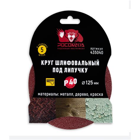 Круг липучка 125мм зерно 40 (5шт.) “Росомаха” 435040